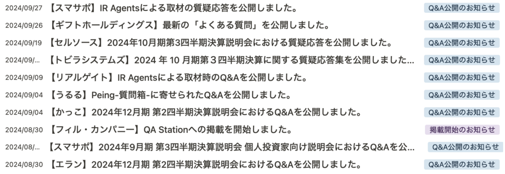 QA Stationは、上場企業のIRに関するQ&Aの情報をデータベース化したプラットフォームです。